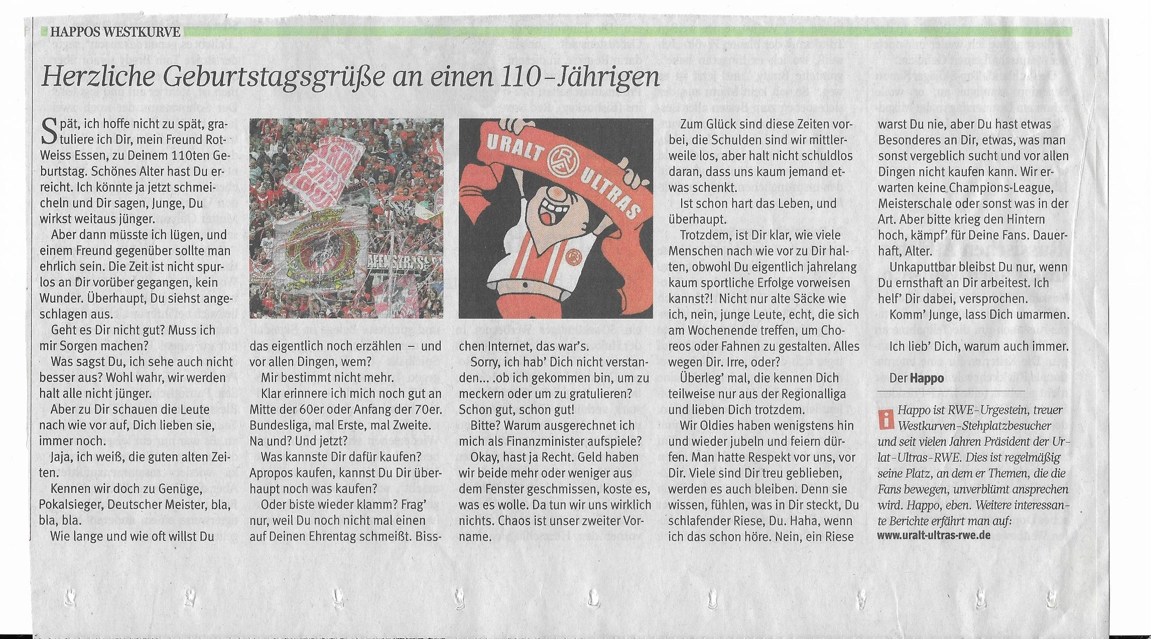 Aus der Reihe "Happos Westkurve" . Meine Gratulationsworte zum 110ten Geburtstag von RWE